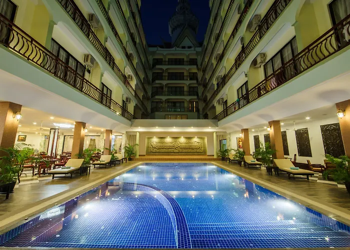 El Smiling Deluxe Hotel Ciudad de Siem Riep, está a una distancia de 2 km de Residencia Real y cuenta con 2 piscinas al aire libre y un centro de fitness. Este elegante hotel de 5 estrellas ofrece alojamiento con 16 habitaciones en la céntrica zona de Ciudad de Siem Riep y a 25 minutos a pie de un lugar de interés cultural como el Museo Nacional de Angkor.